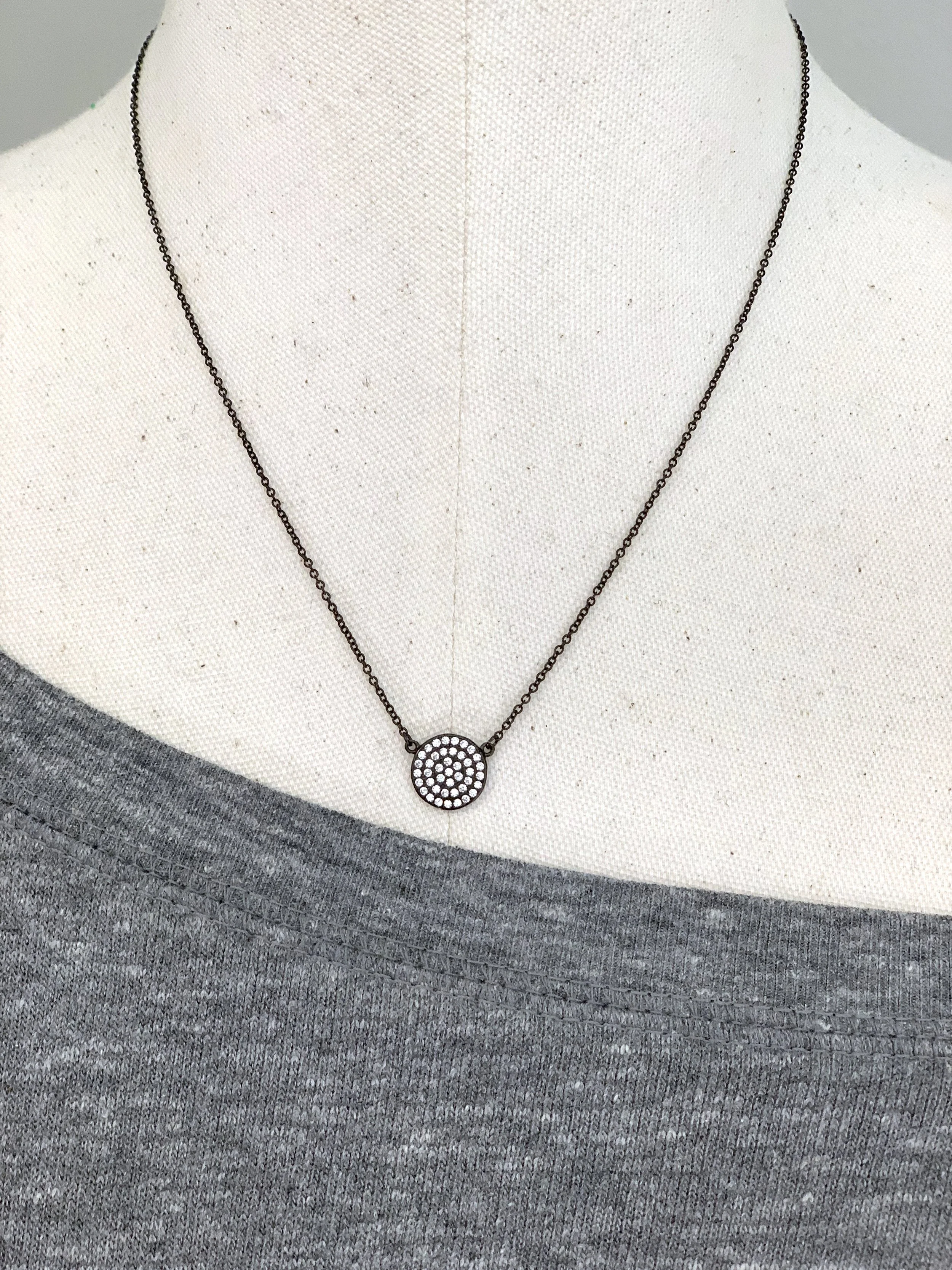 CZ Disk Necklace in Oxidized Silver-Small